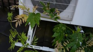 室外機のファンまで蔦がからまっていました。